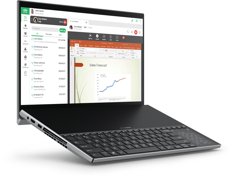 - Use built-in softphone to save costs on calls from anywhere in the world